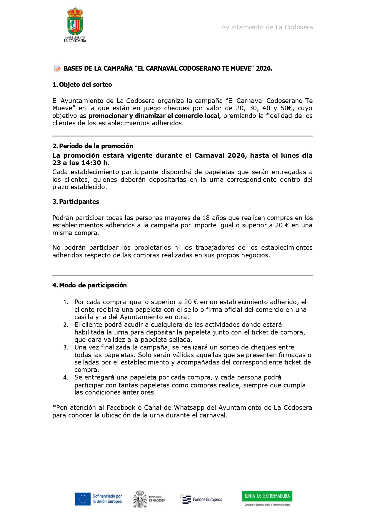 CAMPAÑA DE APOYO AL COMERCIO LOCAL – CARNAVAL LA CODOSERA 2026